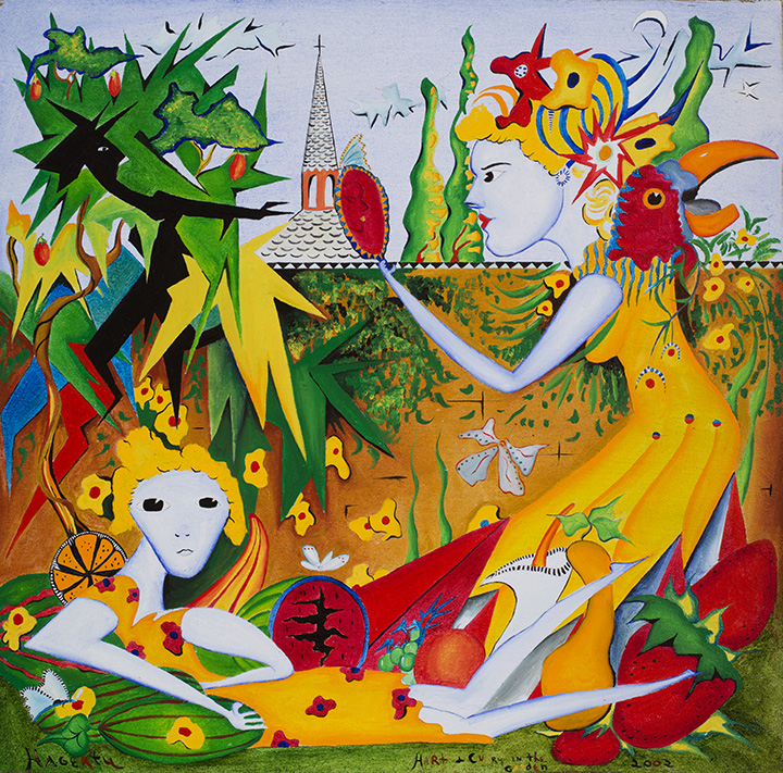 20 Mar Hart and Curry in the Garden Posted at 14:14h in 2000-2009, Surreal by mindsafari About This PieceSize 24" x 24"Medium Oil on CanvasYear 2002