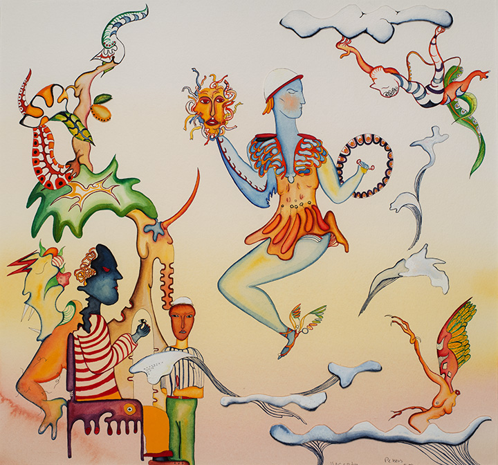 20 Mar Perseus Posted at 14:15h in 1976-1989, Surreal by mindsafari About This PieceSize 20" x 20"Medium Watercolor on PaperYear 1989
